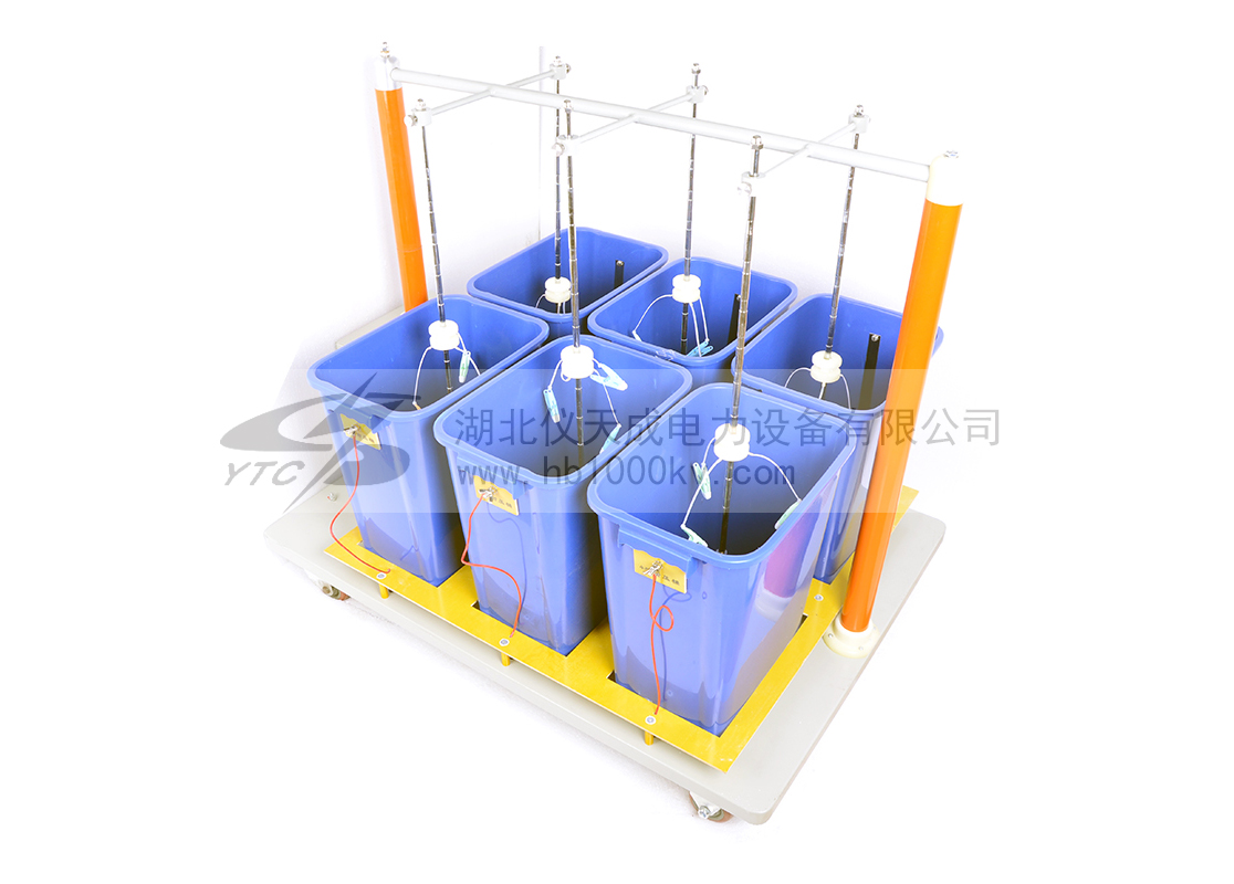 裝置主要特點:可同時測試3雙絕緣靴(手套),并可讀取每只的泄漏電流,準確判斷不合格的絕緣靴(手套);結構底部裝配腳輪,可隨意移動。