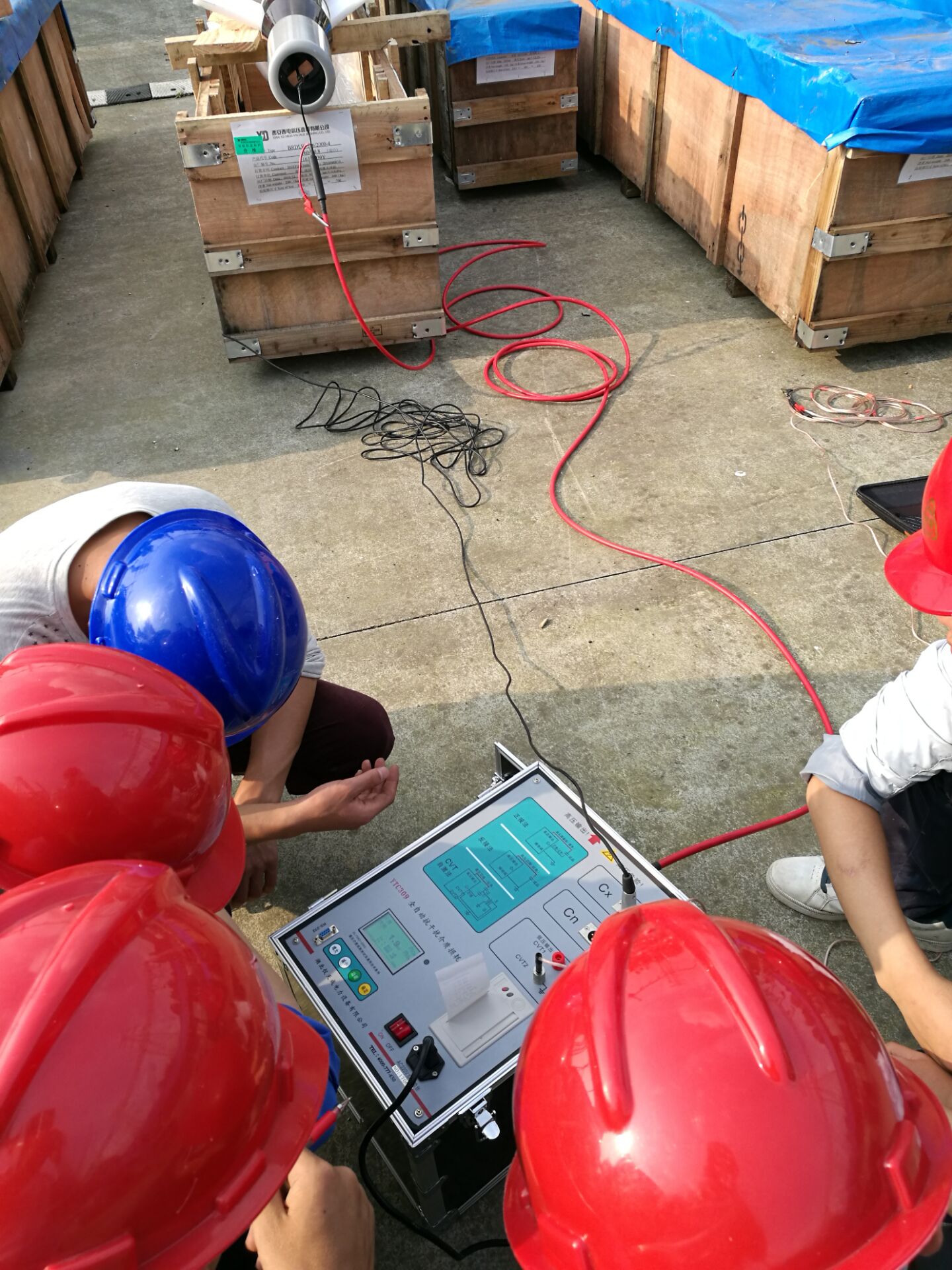 在現(xiàn)場,李工首先對設(shè)備進行了簡單的檢查看看設(shè)備是否有損壞,之后開始了對設(shè)備的培訓(xùn)。此次培訓(xùn)的設(shè)備和內(nèi)容很多。李工對各項設(shè)備的使用,接線方法進行了實地操作和詳細的講解,并對客戶提出疑問的地方,現(xiàn)場給予細心,準確的解答。客戶理解能力比較強,在設(shè)備培訓(xùn)過程中有的同事就已經(jīng)基本掌握了設(shè)備的操作,隨后,又與客戶一起到現(xiàn)場對被試品進行了試驗。