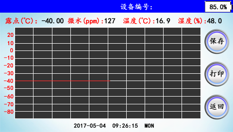 首先打開面板上的流量閥調(diào)節(jié)流量,把流量調(diào)節(jié)到0.6L/min左右,開始測量SF6露點。第一臺設(shè)備測量時間需要5~10分鐘,其后每臺設(shè)備需要3~5分鐘。