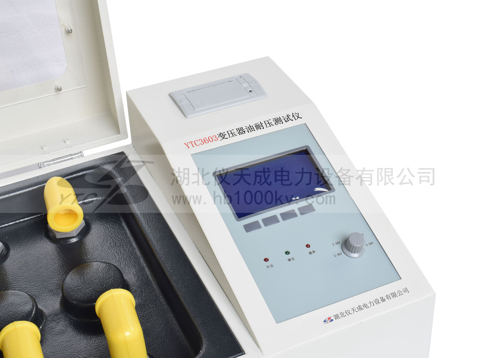 YTC3603絕緣油介電強度測試儀是根據國家標準GB-86《絕緣油介電強度測定法》研制而成,儀器LCD顯示屏可以實現試驗過程和結果顯示,內置EEPROM存儲器可以保存50組試驗數據和結果,所有的人機交互操作都由旋轉鼠標完成,微型打印機可以隨時打印試驗結果,測試儀操作簡單,功能強大,穩定可靠抗干擾能力極強,試驗過程中無死機現象發生。